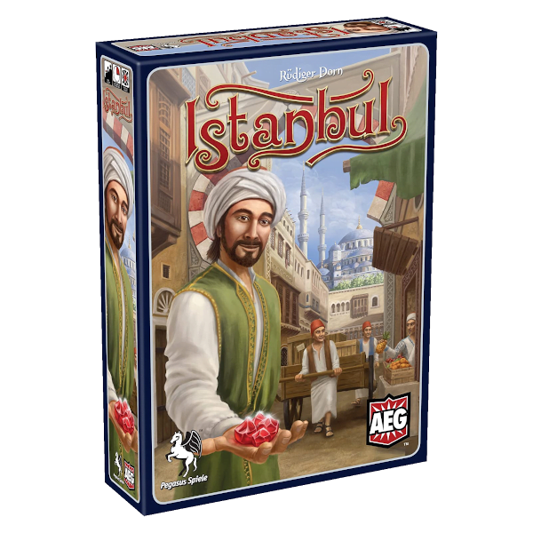 Players lead 1 merchant and 4 assistants through a bazaar with 16 spaces in order to perform actions, which mostly involve buying and selling goods in an effort to acquire 5 rubies.
