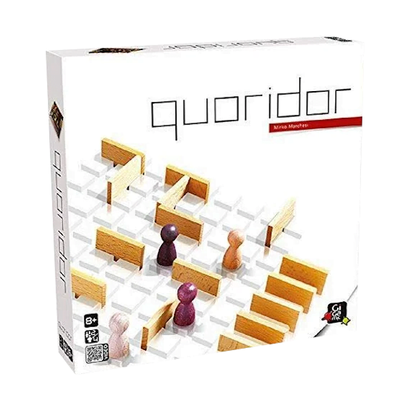 Played on a carved wooden grid with slots where little walls can be placed. Players each control a pawn and win by getting their pawn to the opposite side of the board. Each turn you can either move your pawn or place a wall anywhere on the board, as long as you leave at least one viable path for the other player.