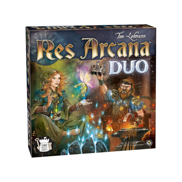 Res Arcana Duo is a two-player version of often checked out, Res Arcana. Gameplay in this version is the same as in the original: Life, Death, Elan, Calm, and Gold are the essences that fuel the art of magic. Choose your mage, gather essences, craft unique artifacts, and use them to summon dragons, acquire places of power, and achieve victory!